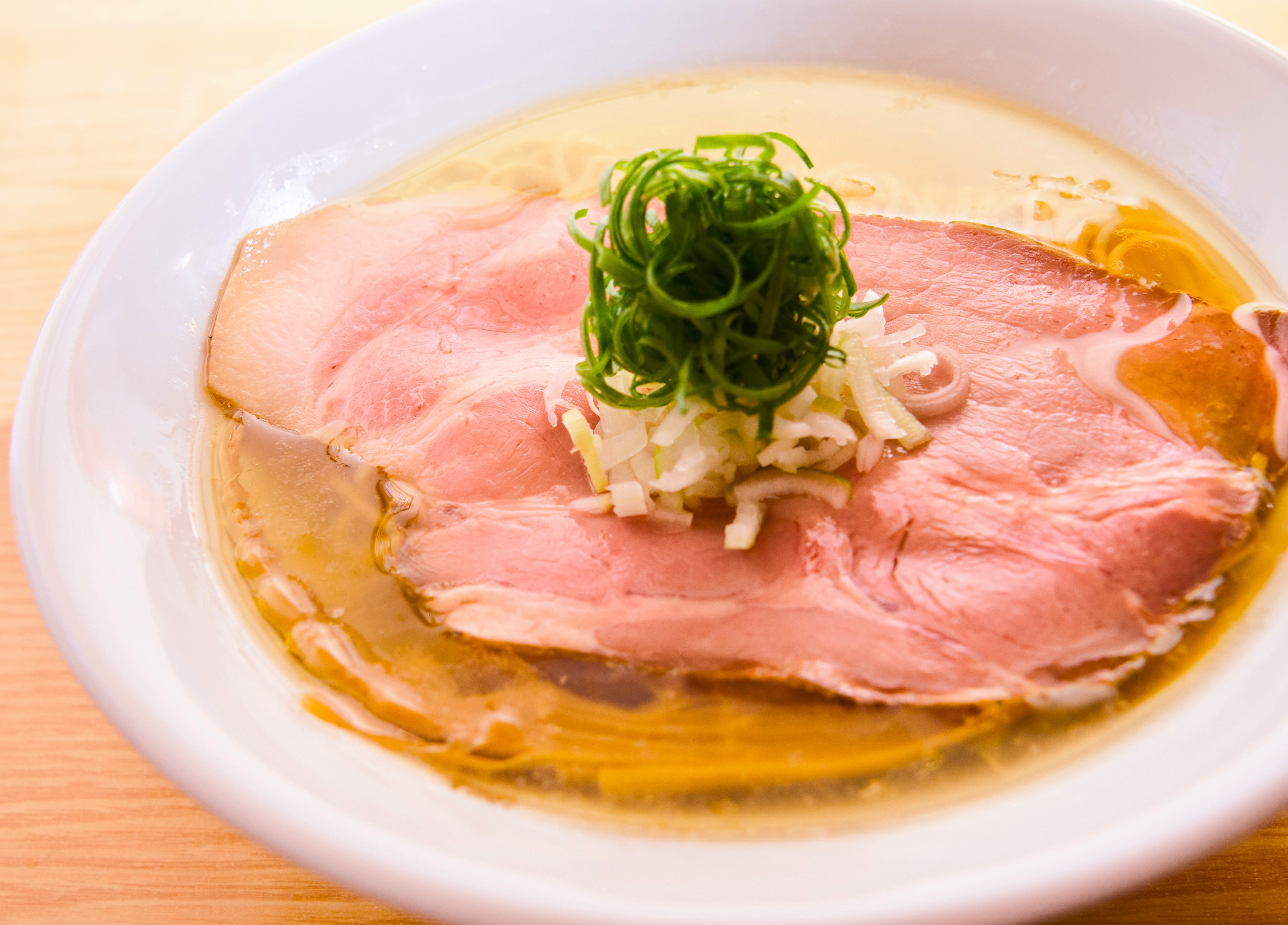 コンセプトはずばり、「日本の素晴らしい食材、食文化を守り育てる一杯を」。イタリアン出身の礒貝オーナーシェフが率い、2021年「ミシュランガイドビブグルマン京都大阪岡山」に選出された「麺処ぐり虎」の味を関東で唯一楽しめるのがこちらだ。軍鶏や丸鶏、瀬戸内産の魚介、昆布、鰹節など厳選した国産食材をかけ合わせ、素材の旨味を丁寧に引き出した至高の一杯に仕立てる。名物の「鶏塩ラーメン」は8時間以上コトコト炊き上げた鶏清湯スープ、4カ国の塩を調合した塩ダレ、魚介出汁から旨味を抽出。あっさりしつつも奥行きがあり、幅広い層から支持を集めている。