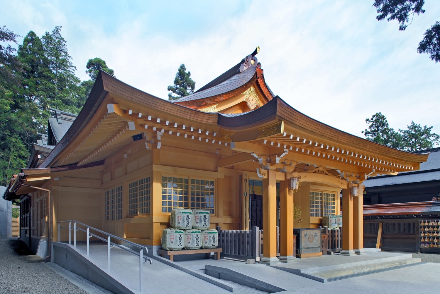 平成27年に増築した社殿。奥の本殿は安土桃山時代の建立