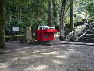 巨大下駄。大きな鉄下駄がたくさん奉納されている