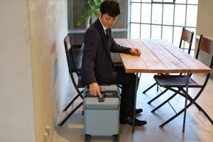 操作はわずか1秒。ワンタッチするだけでトップ部分から本体の荷物を取り出し・収納できるのは画期的。スーツケースを寝かさなくていいので、場所を選ばないのもうれしい。実用新案取得済み!