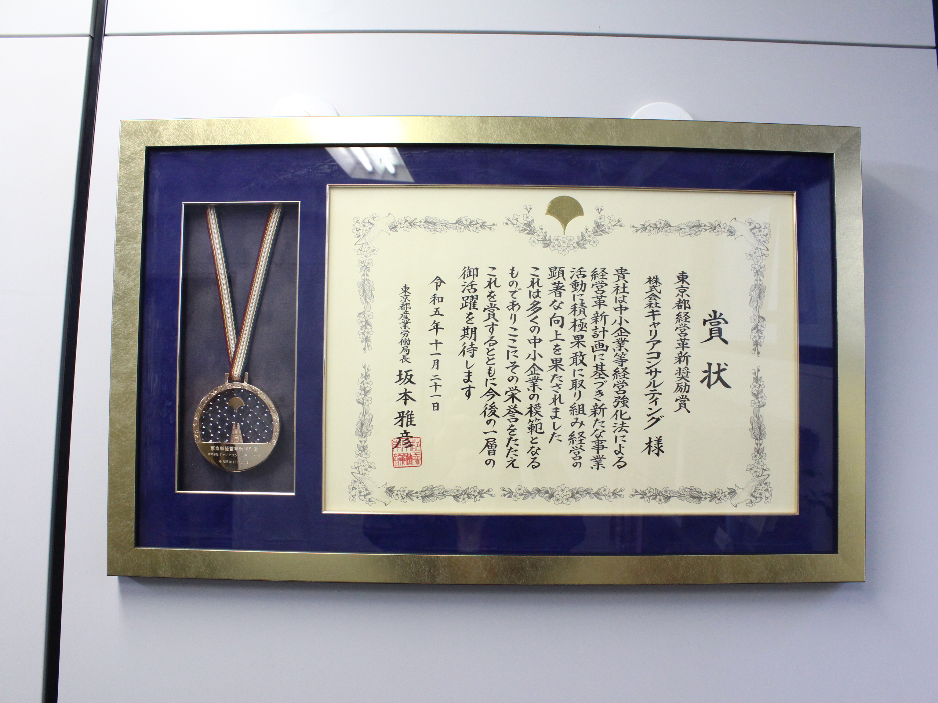 東京都経営革新優秀賞とは、経営革新計画終了まで1年未満の企業を対象に、計画の実現状況などを審査し、表彰する都独自の制度。