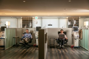 セルフ透析センターの透析室の様子。より集中できる個室もあり、テレワークがはかどる