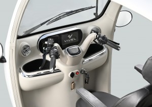 まず目を引くのが可愛らしいビジュアル。「女性でも乗りやすい」をコンセプトに、カラーもホワイトと、ツートンカラーも提供予定。そして機能性もアップ。メーター表示や内装を大幅に改良し動画の視聴も可能、フットブレーキを採用することで、よりスタイリッシュな1台に。