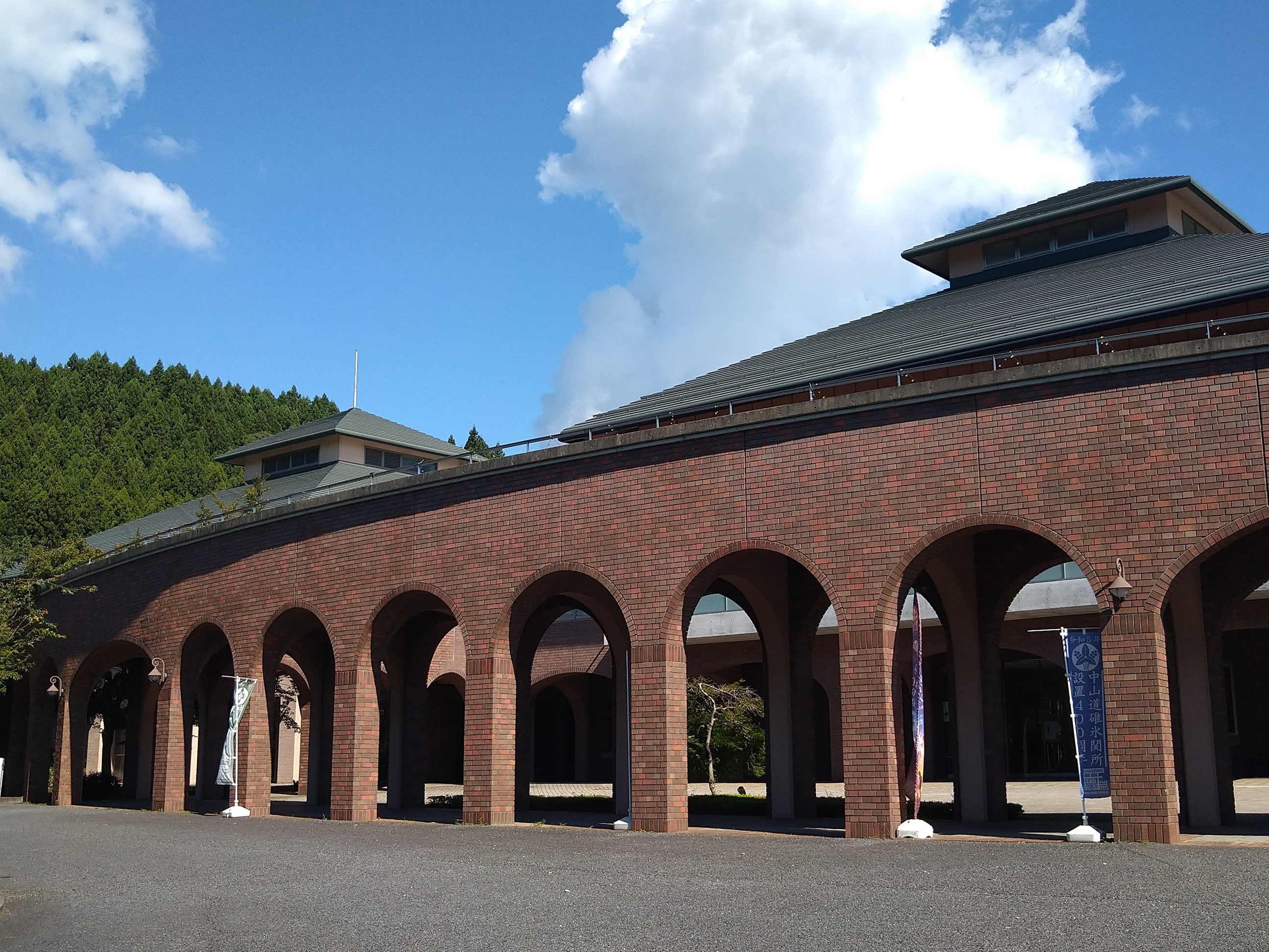 碓氷峠の名所「めがね橋」をモチーフにした回廊が特徴