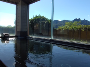 • 大浴場内風呂「碓氷」では妙義山の一枚絵が広がる