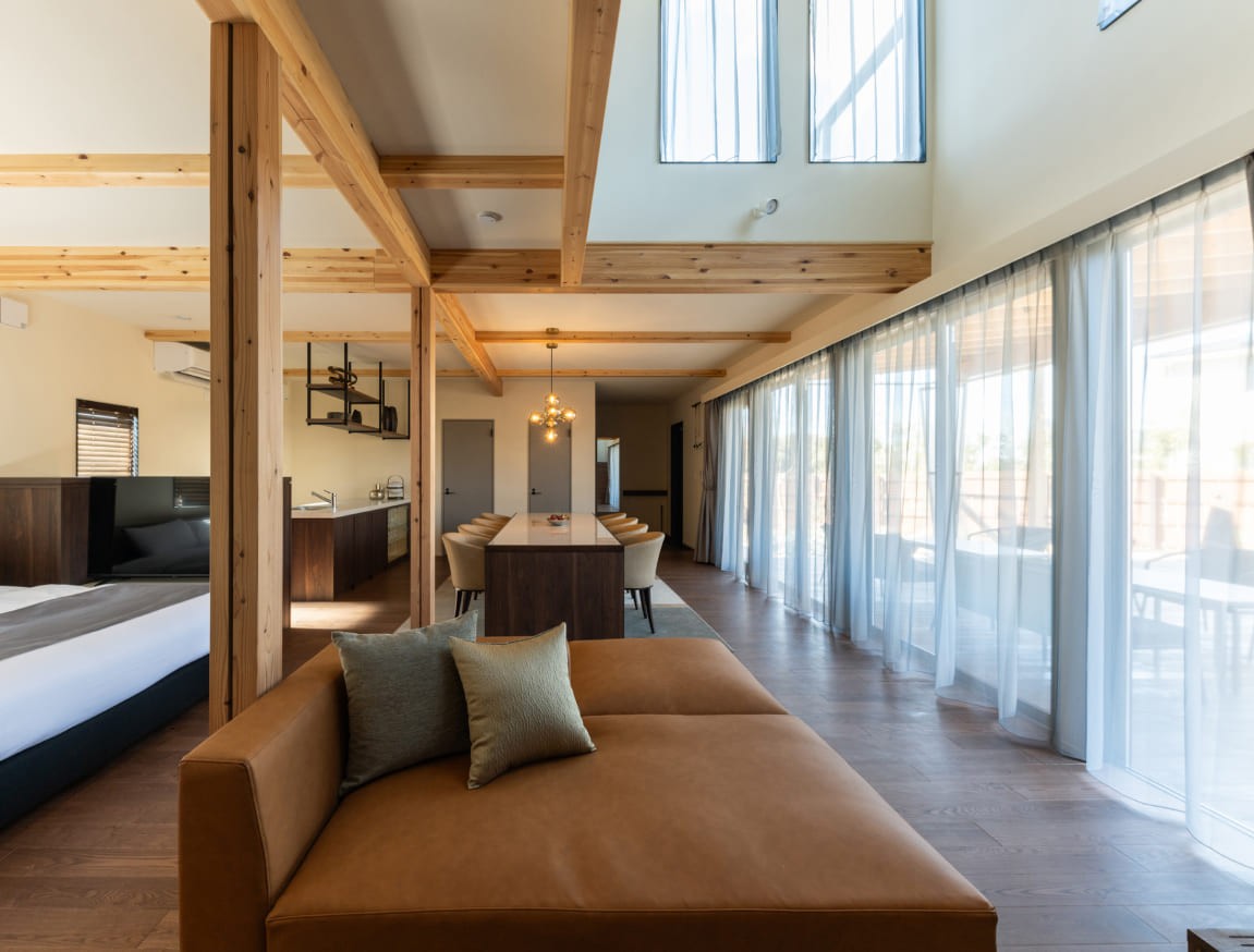 コテージタイプの客室の一例。スタンダードのほか、メゾネットスイートやペット同伴可の部屋もある