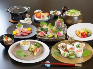 令和6年7月に客室と食事処を改装しリニューアル。太平洋を望む客室には茨城県産材木を使用した家具を設え、水府提灯や笠間焼など茨城の伝統工芸を配しており、茨城の魅力を発信する場を担う。大浴場では石造りの「磯の湯」や檜の「松の湯」に浸かり、露天風呂からは雄大な海景を満喫。個室食事処「水輝」では、地元食材を使った会席料理に加え、茨城の地酒を取り揃え、五感で味わう贅沢なひとときをお届けします。