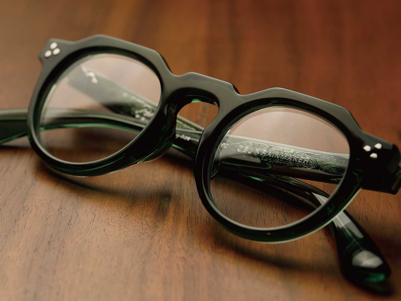 OBJヴィンテージシリーズには、そんなお客様との物語が宿っている。ある日、眼鏡修理の依頼を受けた。昭和初期に作られたと思われる古いフレームだ。できる限り製作時の状態に近づけるため、リムの構造からフォーミングの厚みに至るまでミクロン単位で分析していくうち、その造作のあまりの美しさと味わい深さに心を奪われた。