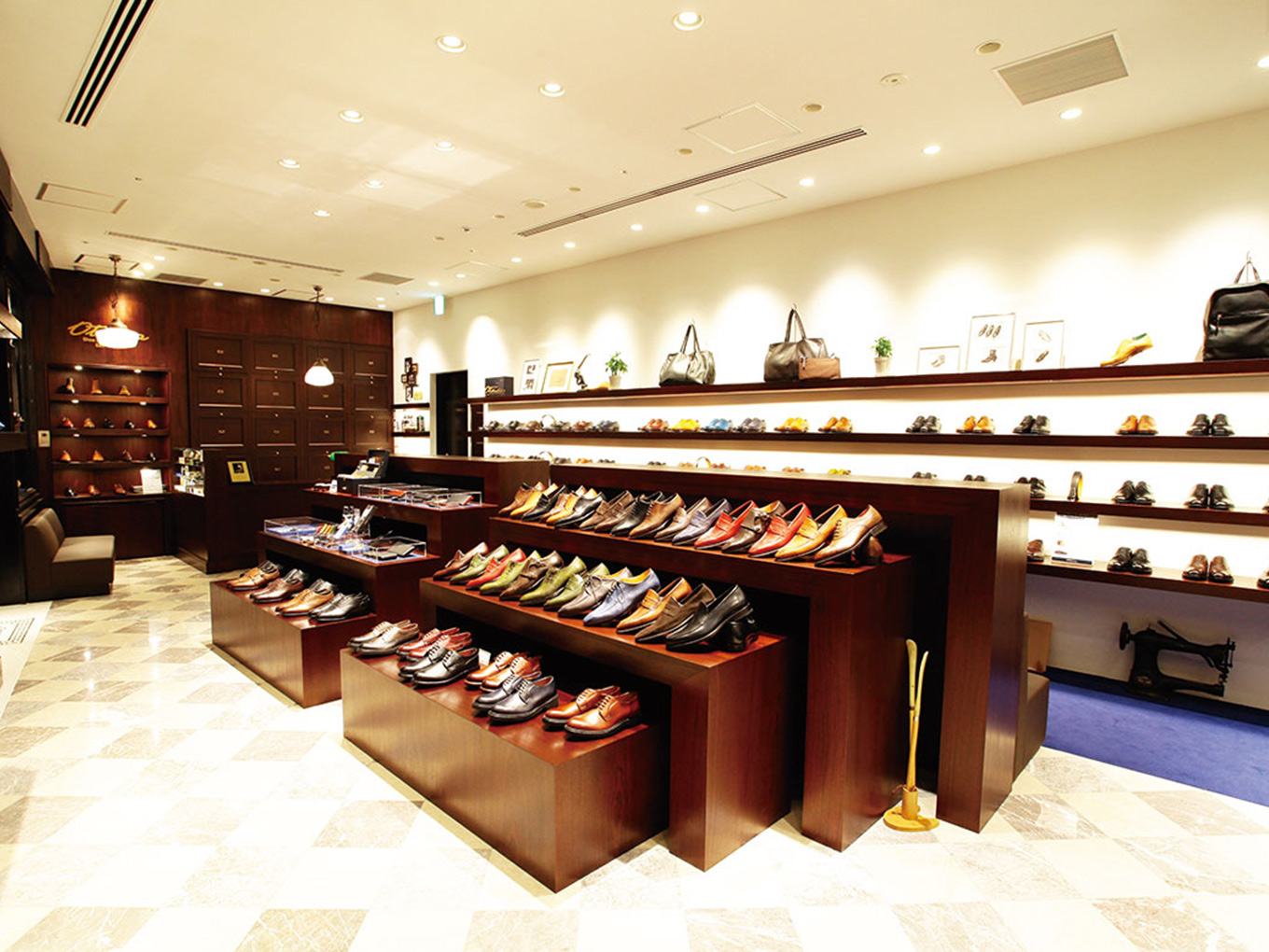 店内にはシューコンシェルジュが常駐。目的と予算に合わせたシューズを案内してくれる。できれば、1882年に明治天皇の御靴製作の栄誉に浴したビスポークを体験してみたいが、同クオリティの自社工場製の靴が手の届きやすい価格帯からそろえてあるので、安心して足を運んでほしい。また、鹿鳴館時代の復刻シューズもおすすめだ。