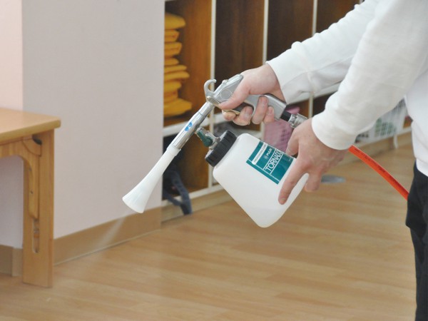 経口毒性も皮膚刺激成分も見られず、⼈体に付着しても安全とされる酸化チタンによる光触媒コーティングは、永続的な消臭・抗菌効果が期待できるだけでなく施工場所も選ばない。オフィスや店舗、学校や塾、医療現場や公共交通機関など多方面で採用が相次いだが、ひとつ、酸化チタンは粒子が大きく塗料などの接着剤役を必要とするという弱点があった。だが、現在ではこれを克服。さらに気軽で強力なコーティングが可能となっている。